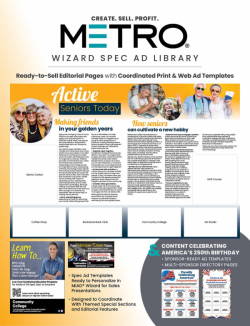 ![]() Ad & Page Templates, Images, Headings & Social Media"I love all of the great ideas Metro's spec ad templates provide for my advertisers! As a designer, having the ad copy already in place saves me so much time and thought." - Trisha Lalancette, Hurd Media Group