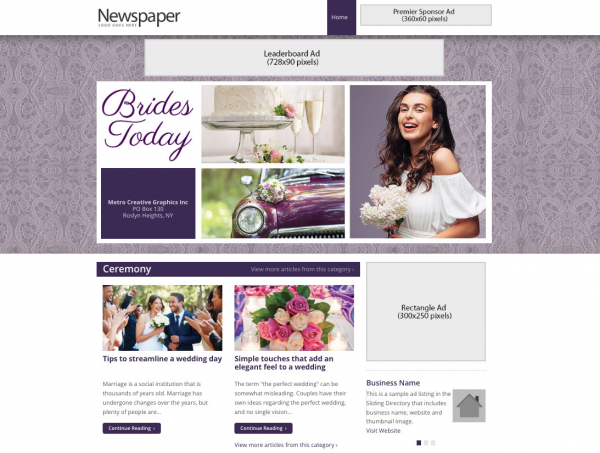 - Themed ready-to-sell editorial page and directory templates
